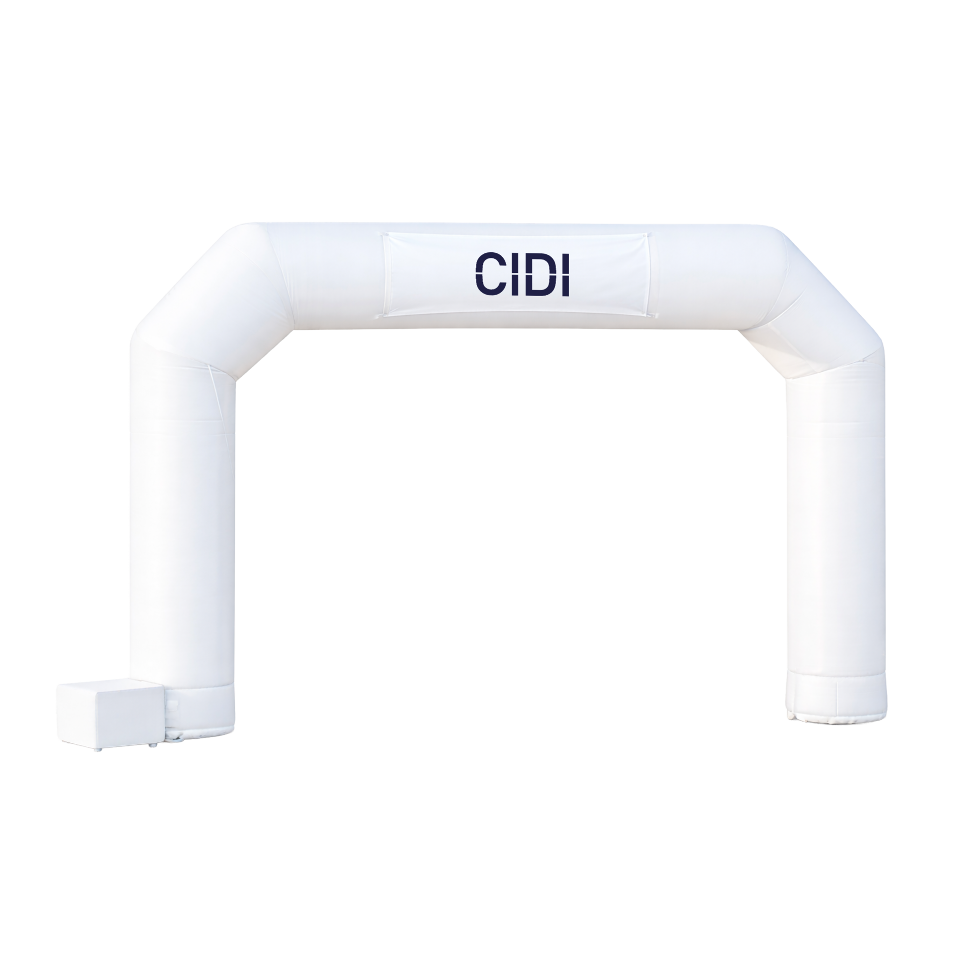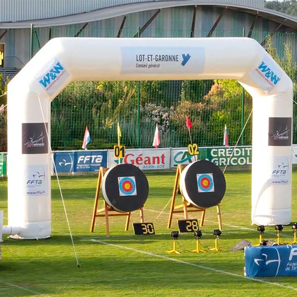 Arche blanche ventilée de 150 cm de diamètre, avec fixation en velcro pour personnalisation.