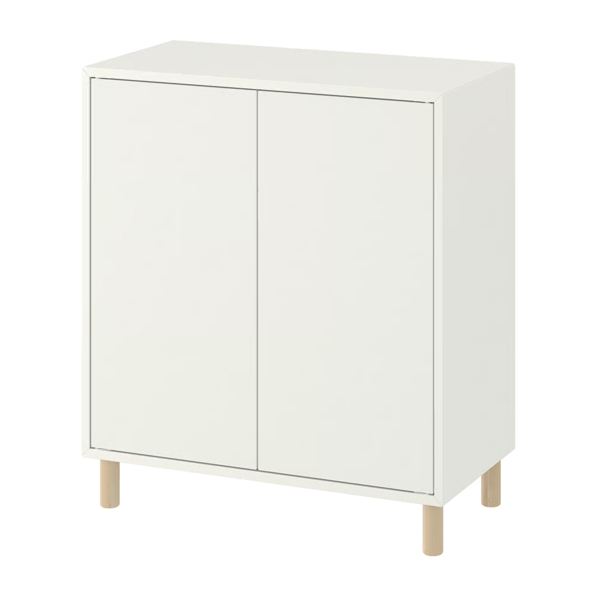 Meuble de rangement au design scandinave, composé de modules blancs sur pieds en bois. À la fois esthétique et pratique, il permet d’organiser et de mettre en valeur vos objets avec légèreté.